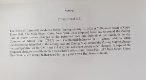 been changed to Monday, July 17, 2023, at 7:00 p.m. at the Cairo Fire House, Railroad Avenue, Cairo, NY.