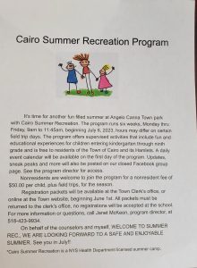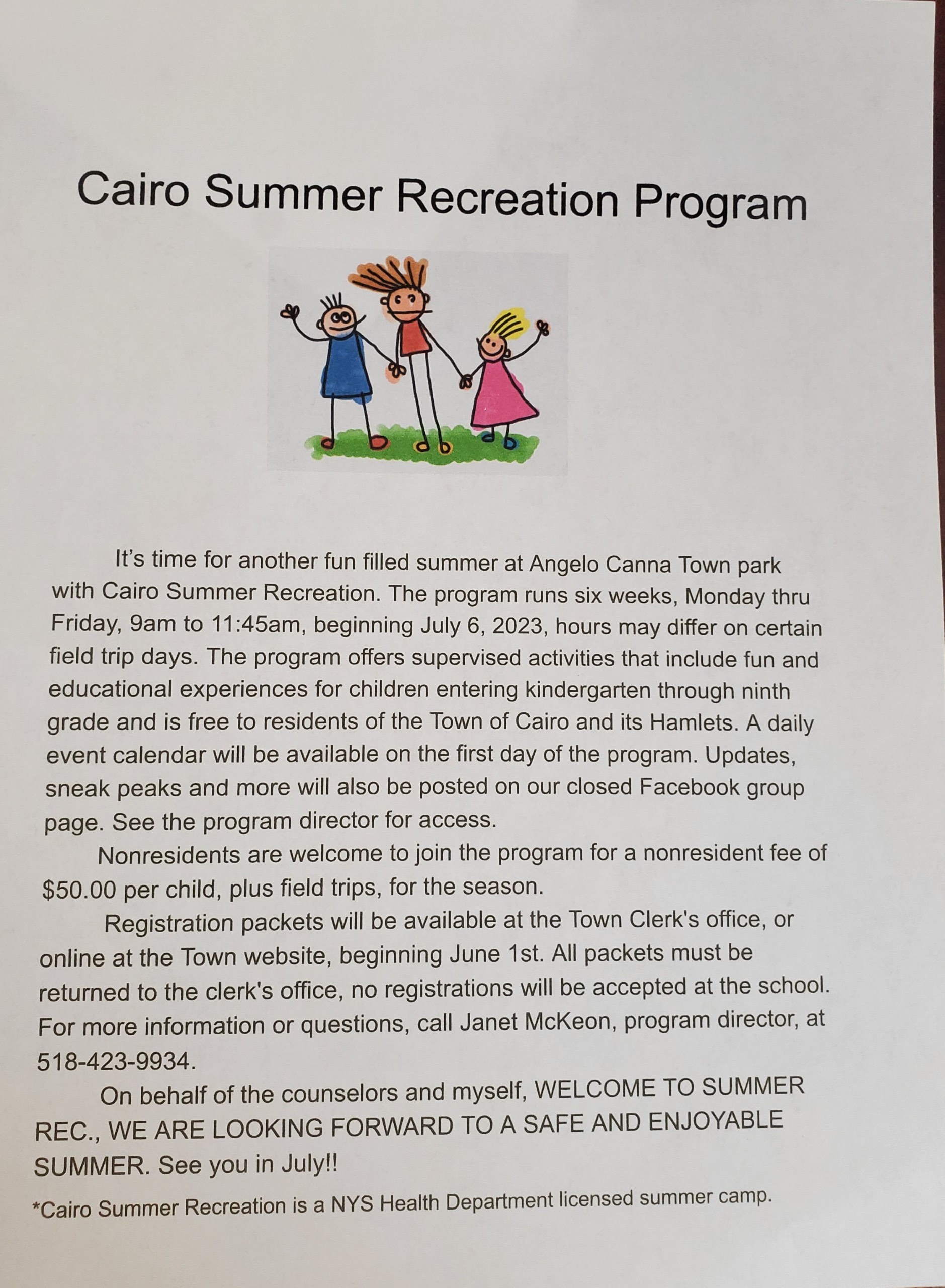 Registration for the Cairo Summer Recreation Program enrollment starts June 1, 2023.